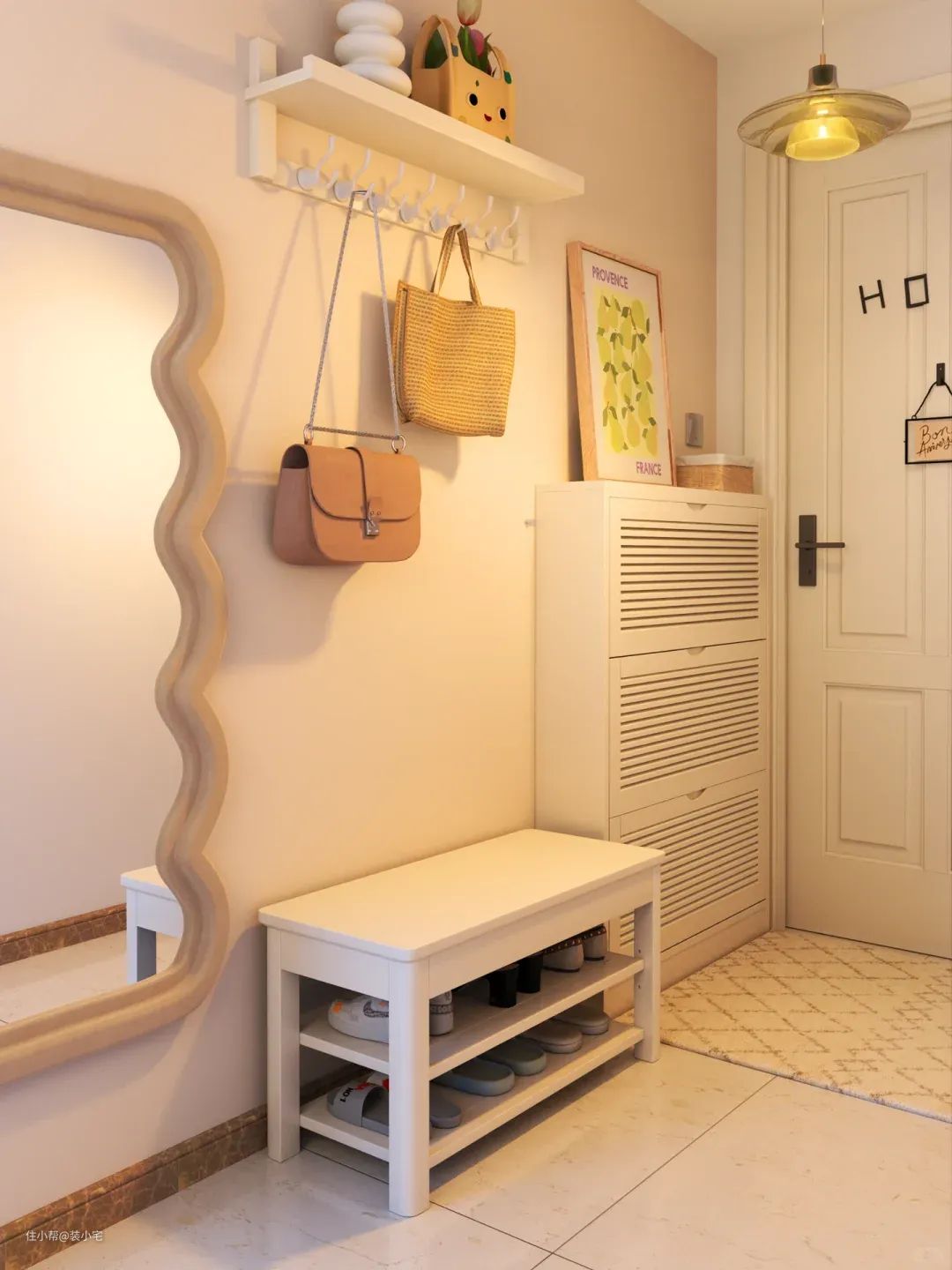 除了鞋子,还有雨伞、包包、外套等物品也需要一个合适的地方放置。