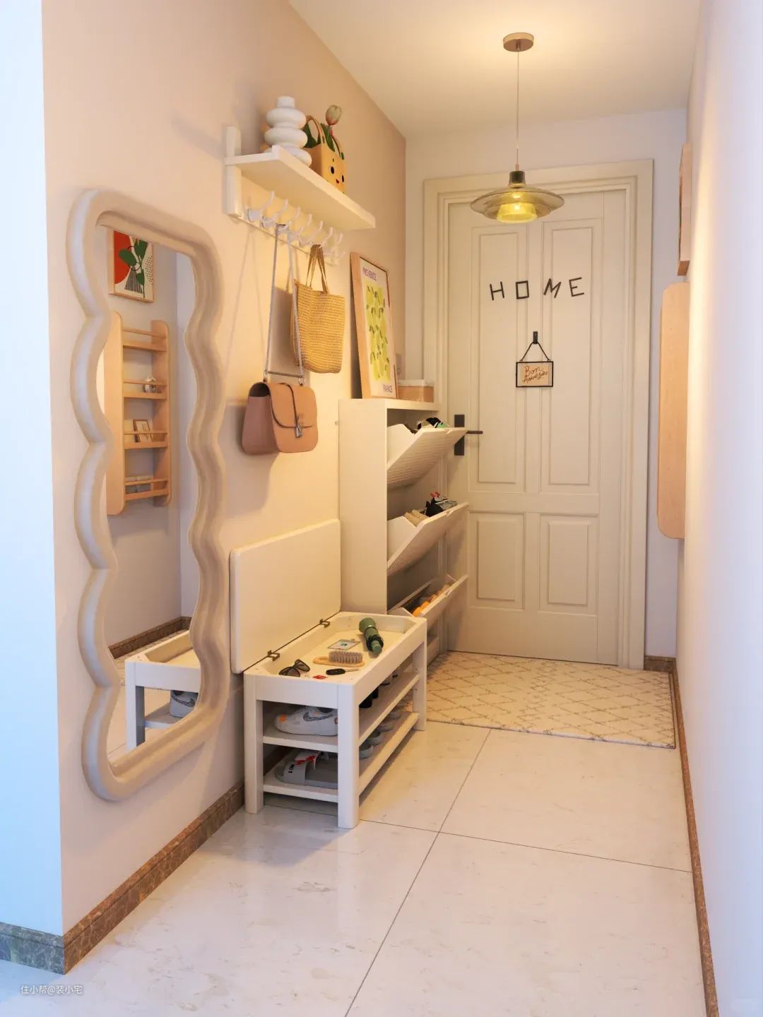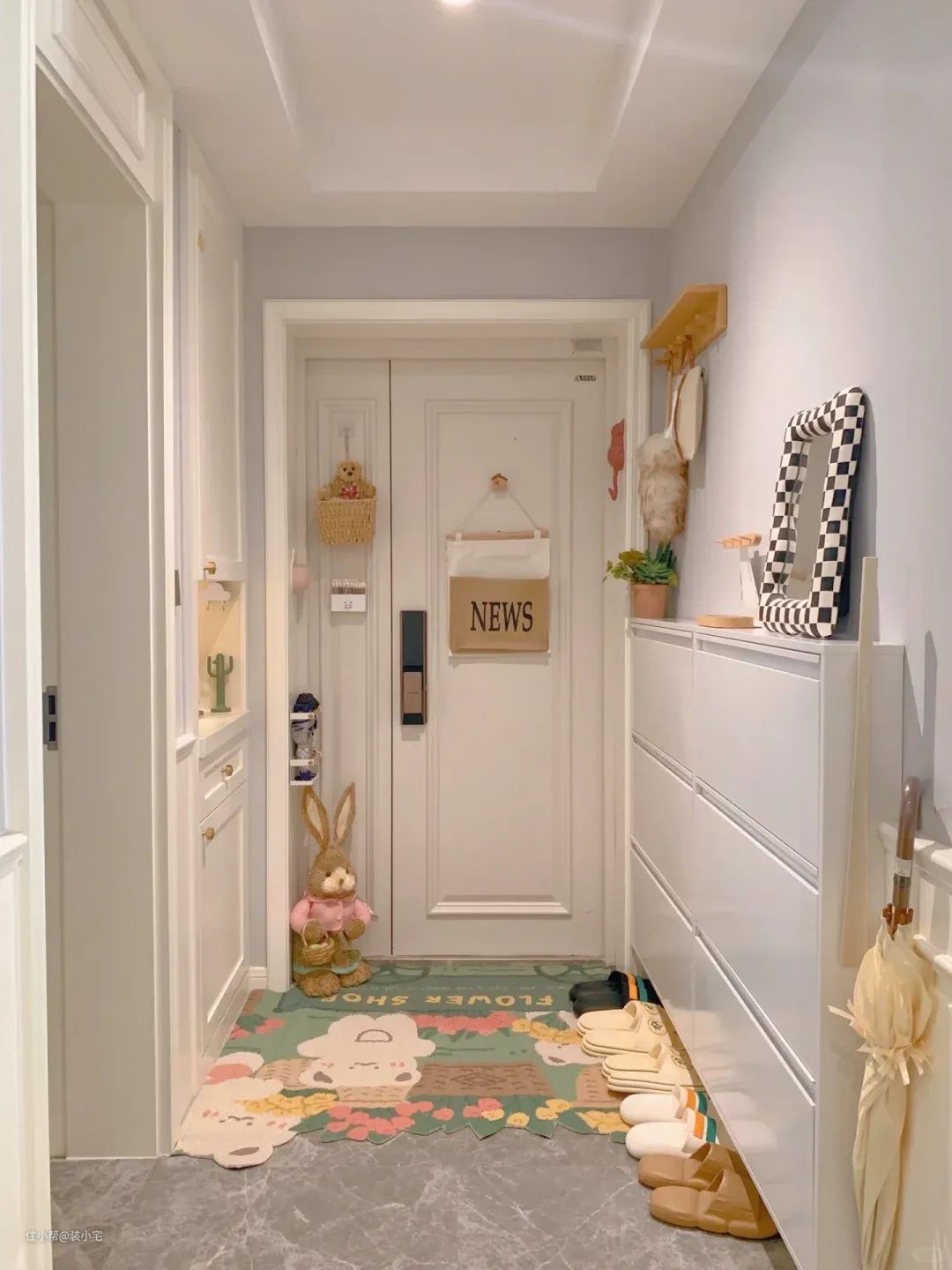 我最近去了一个朋友家,那玄关布置得,简直了!高级得让人不好意思进门,生怕自己的鞋底弄脏了人家精致的小空间。