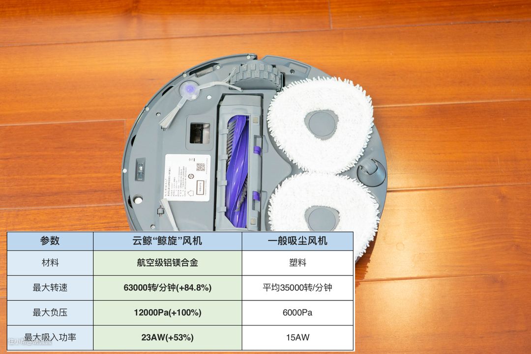 电机吸力是衡量扫地机器人清洁能力的重要指标之一,吸力的高低直接关联到清洁能力的强弱;而吸力的持久稳定则体现了产品的耐用性。 云鲸逍遥001配置了行业天花板的吸力, 吸力提升至惊人的12000Pa。
