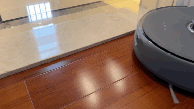 云鲸逍遥001能够顺利越过20mm高的门槛,整个过程尤其丝滑没有卡顿、探索的情况。