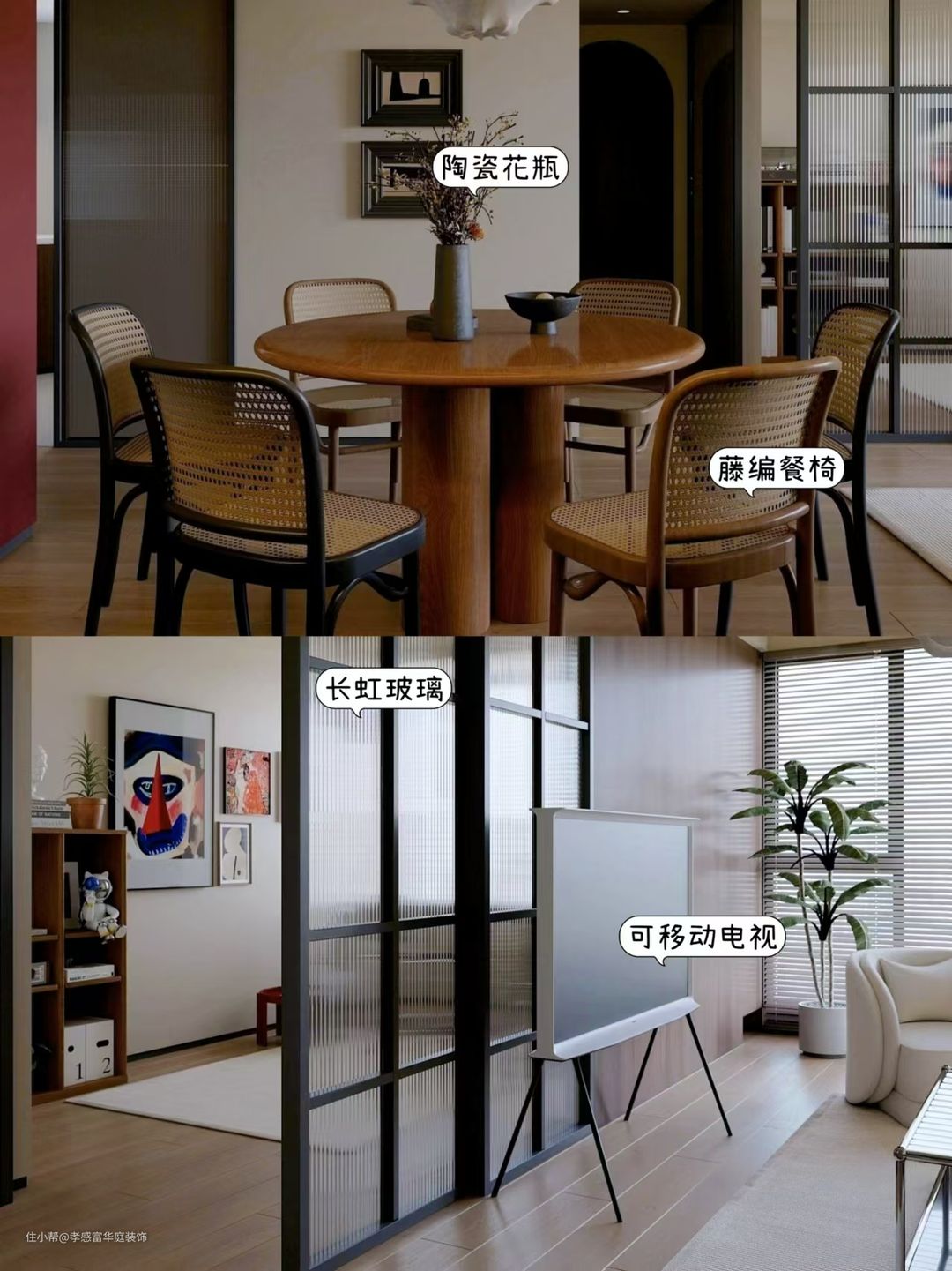 🌱家具选择:中古风家具以实木和金属为主要材质,线条简洁而流畅。在选择时,我们推荐挑选具有年代感的复古家具,或者现代设计但带有复古元素的家具。比如这款复古实木茶几🍵,它的线条优雅,色彩沉稳,是客厅的亮点之一。