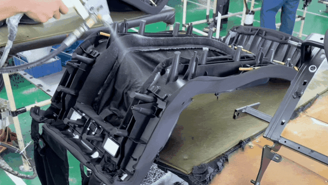 类似的细节还有,比如小厂通常会用刷子人工涂抹润滑脂,而奥佳华则采用喷枪雾化喷射,效率更高,也更均匀,长期使用不会出现(润滑脂)局部渗透的现象 ▲