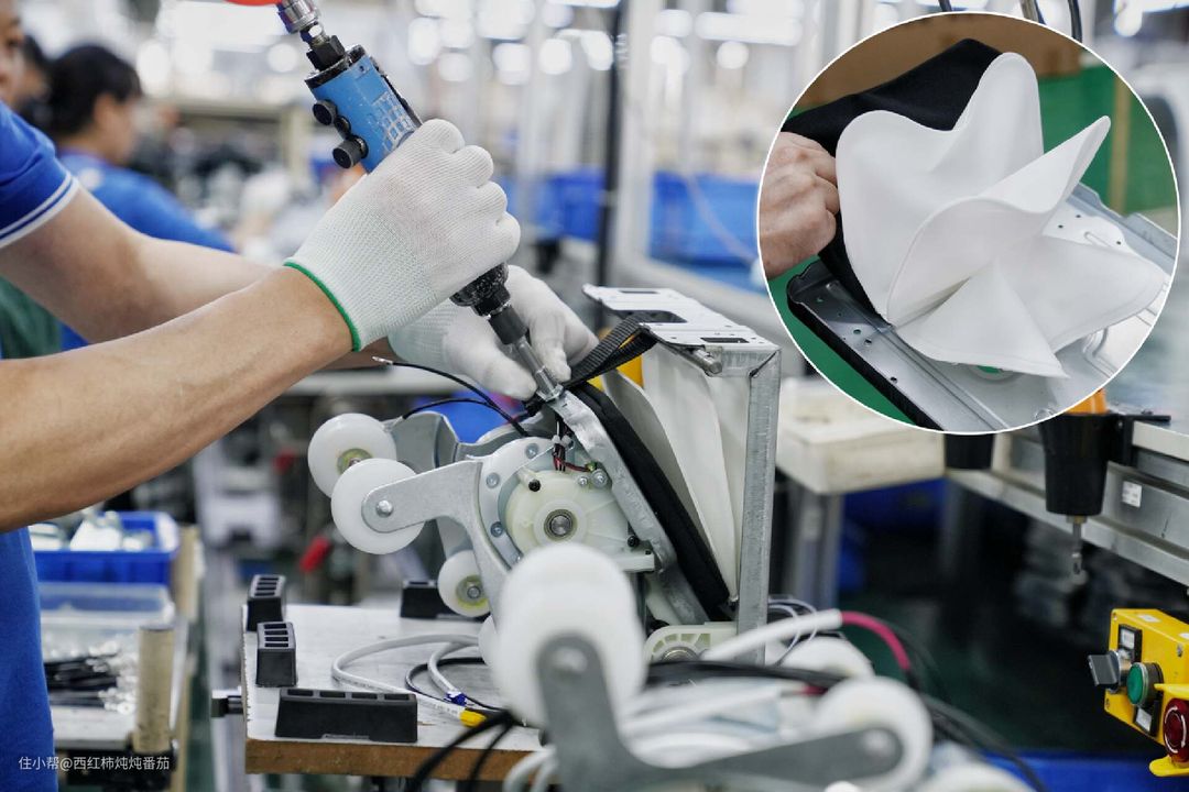 所以整个参观流程跟我预期的不太一样:我以为我只会看到按摩椅的组装流水线,但实际上,我不仅看到了五金件的冲压、电焊以及弯折,看到了布料的裁切和缝制,还看到了注塑机从投料到脱模的完整过程 ▲