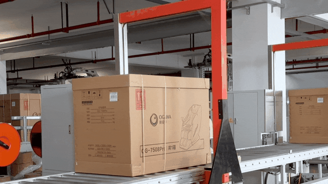 所有检查全部通过后,就可以对按摩椅进行装箱、传送、打包以及堆叠,最终送入立库保存了。