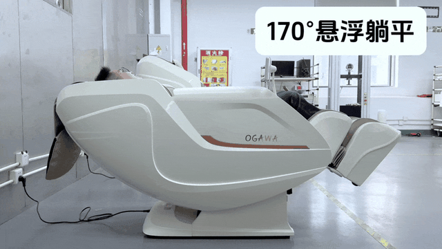 最后用实机演示给大家展示一下灵动导轨加持下的 170°悬浮躺平以及两档零重力模式下的按摩椅形态。可以看到 170°悬浮躺平姿态下,身体更加舒展,更适合平躺午休 ▲