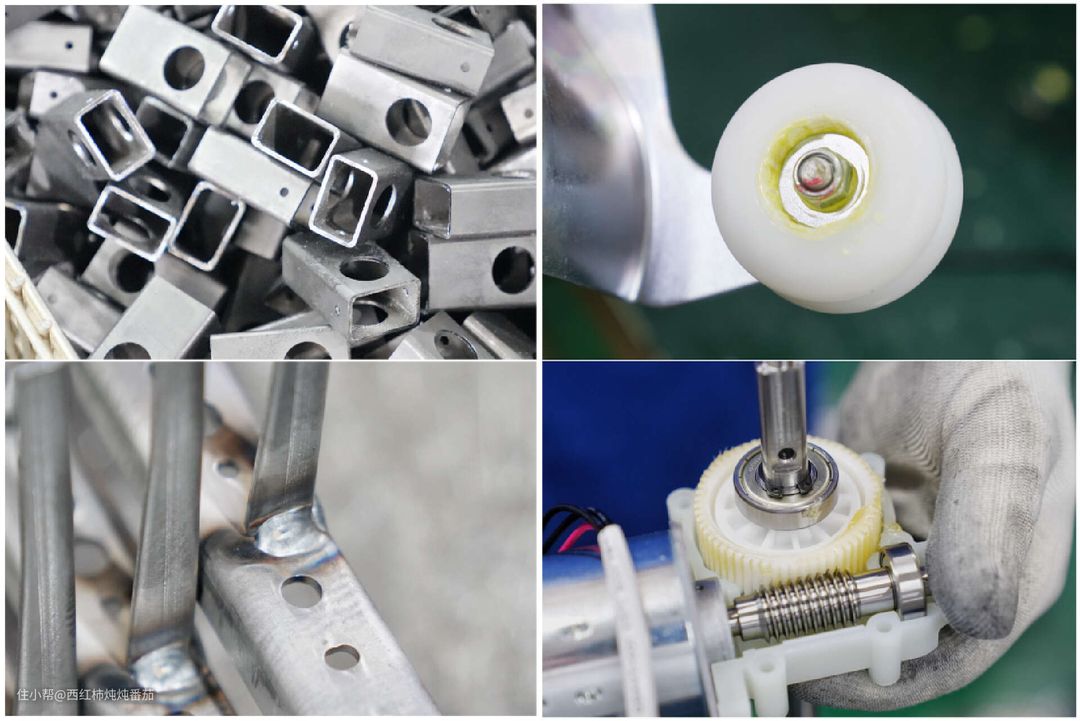 于是我看到了:①激光切割平整无毛刺,②电焊工艺满焊无瑕疵,③按摩头内侧固定螺母涂有厌氧胶防脱落,④齿轮箱内的润滑脂也是特调的 ▲