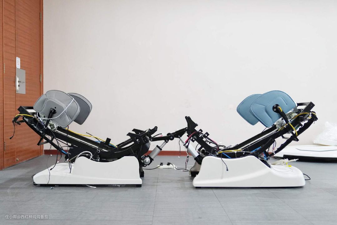 为了更加直观地展现灵动导轨和普通SL导轨的区别,我用两台坐姿下完全相同的按摩椅来演示一下两者放平过程: