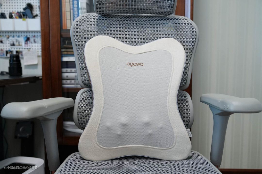 比如我之前评测过的这款奥佳华腰部按摩仪,当其它品牌的同类产品还在采用 1D机芯,只能实现定点按摩的时候,奥佳华把 2D机芯「搬」到了腰靠上面 ▲