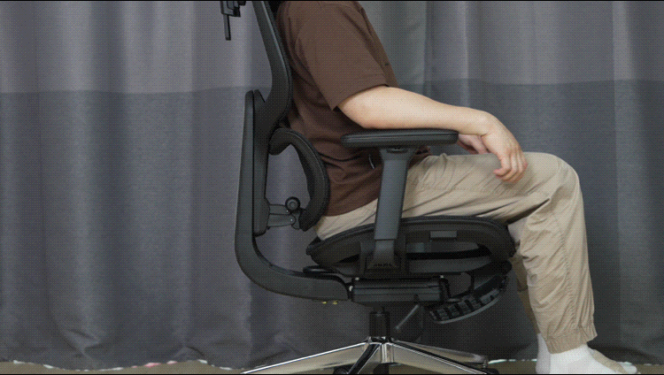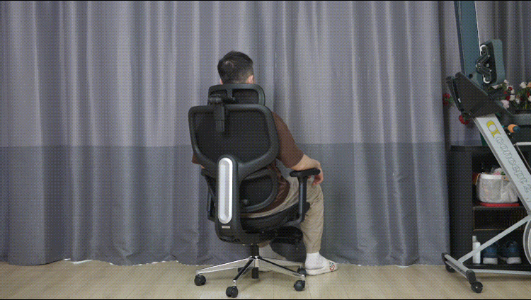 实际使用中,腰枕调节到最大支撑下,能给腰部提供很不错的支撑感又不会过头,并且在伏案办公、上背没有贴着椅背的情况下,腰枕还能紧贴用户腰部给与一定支撑,比较难得的设计。