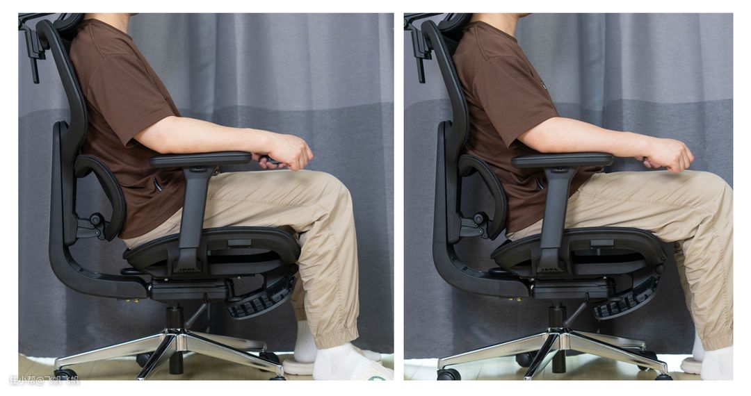 肉眼看到调节是往前推了,但腰部靠上去后差异只是支撑感大小的差别。