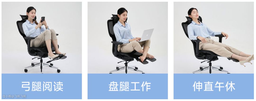 以我伏案看书为例,前后调节的腰枕能让人在微后仰100°的姿势下,头枕亦然能顶住颈椎来分担头部的重量,这一点设计真的是太优秀了。