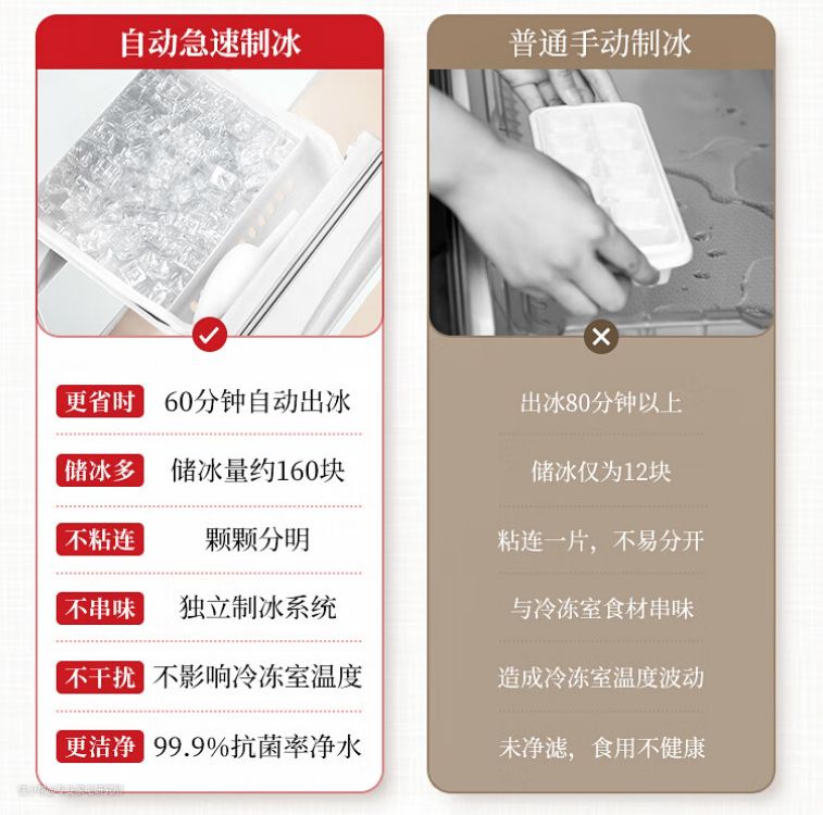 冰箱的制冰功能是否必需?夏天到了,我想应该没有人能拒绝一台可以自动制冰的冰箱。家用冰箱的制冰功能跟商业制冰机一样,冰块自动脱落,不需要手掰;冰块也没那么容易融化,可以维持很长时间,普通冰格冻出来的冰块几分钟就化了。