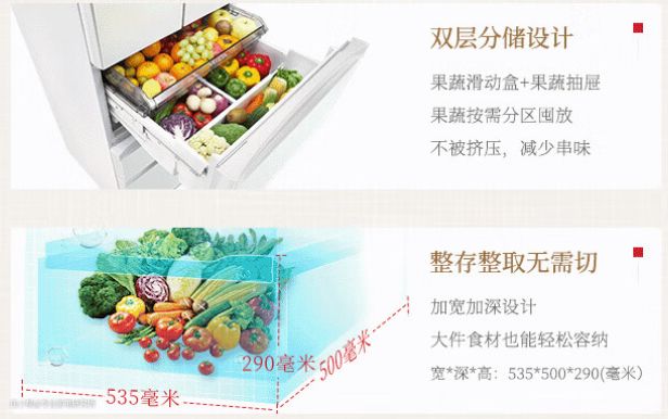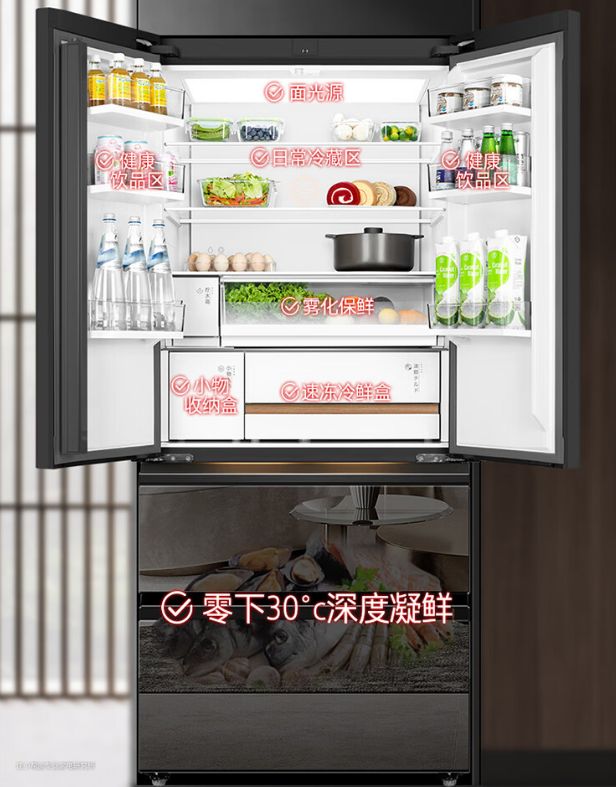 部分产品还配有双层速冷冰鲜舱,温度略低于冷藏室温度,这样可快速锁住食材的鲜味。