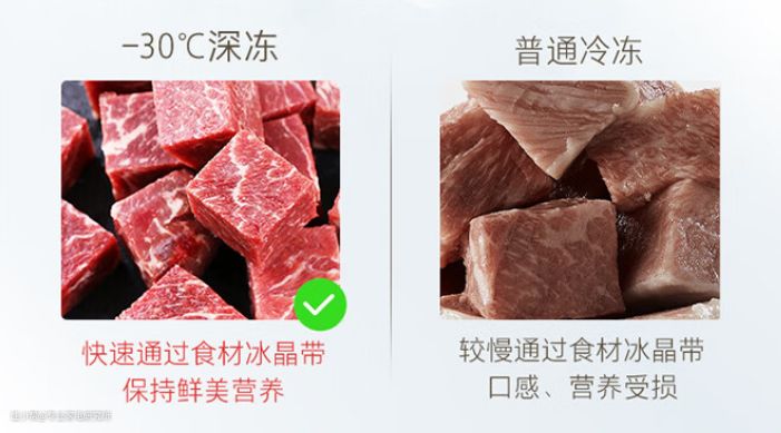 - -30℃深冻凝鲜:以超低温速冻,强势冻力疾速通过食材冰晶带,凝珠高端食材本色原味,避免冷冻速度较慢通过食材冰晶带口感、营养受损。