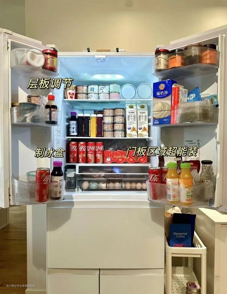 说到东芝冰箱,大家都会想到一个词,那就是“皮薄馅大”,优秀代表如东芝大白桃479,得益于它的航空级超薄真空保温层,厚度只有普通材料的1/3,搭载日本先进发泡技术,容积率更高(相同体积下,比普通冰箱多装150升),适合很多小户型家庭对大容量冰箱的需求。而且日系冰箱设计的精细收纳空间很合理,例如大白桃有独立的果蔬大抽屉,整根芹菜都能轻松放下,还有独立的制冰室,夏天来杯冰美式不要太爽。