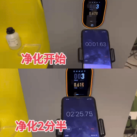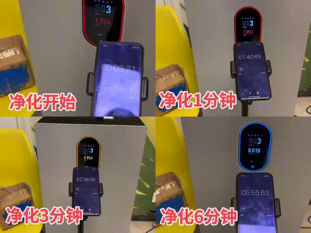 净化速度肉眼可见,尤其在净化3分钟期间,数值大幅下降。