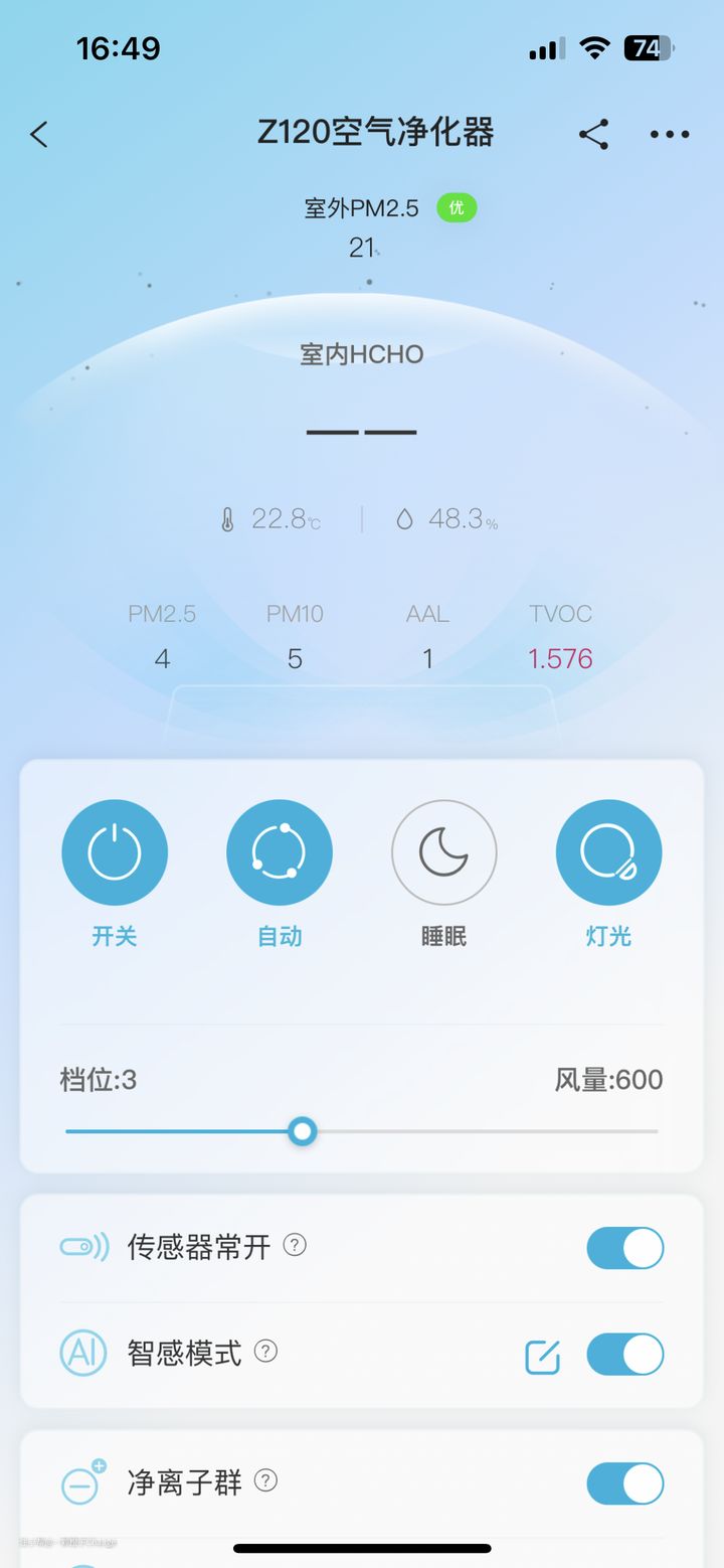 我测过很多空气净化器,Z120比我之前用过的空气净化器,净化速度更快,更彻底。