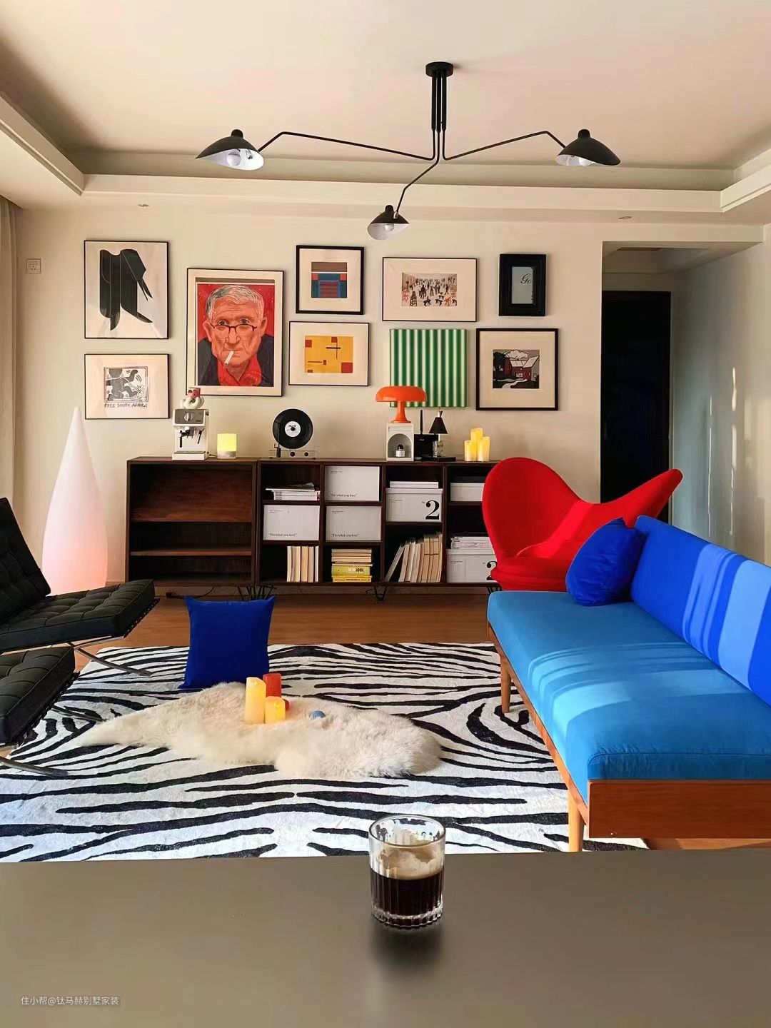 法则4:对比色原则,在空间的局部,运用于整体色调相比对的颜色,能打破沉闷单调的气氛,给人一种明亮饱满、丰富多彩的视觉冲击力,在家居设计中大胆运用对比色搭配,可以架构出颜值爆表的时尚家居。