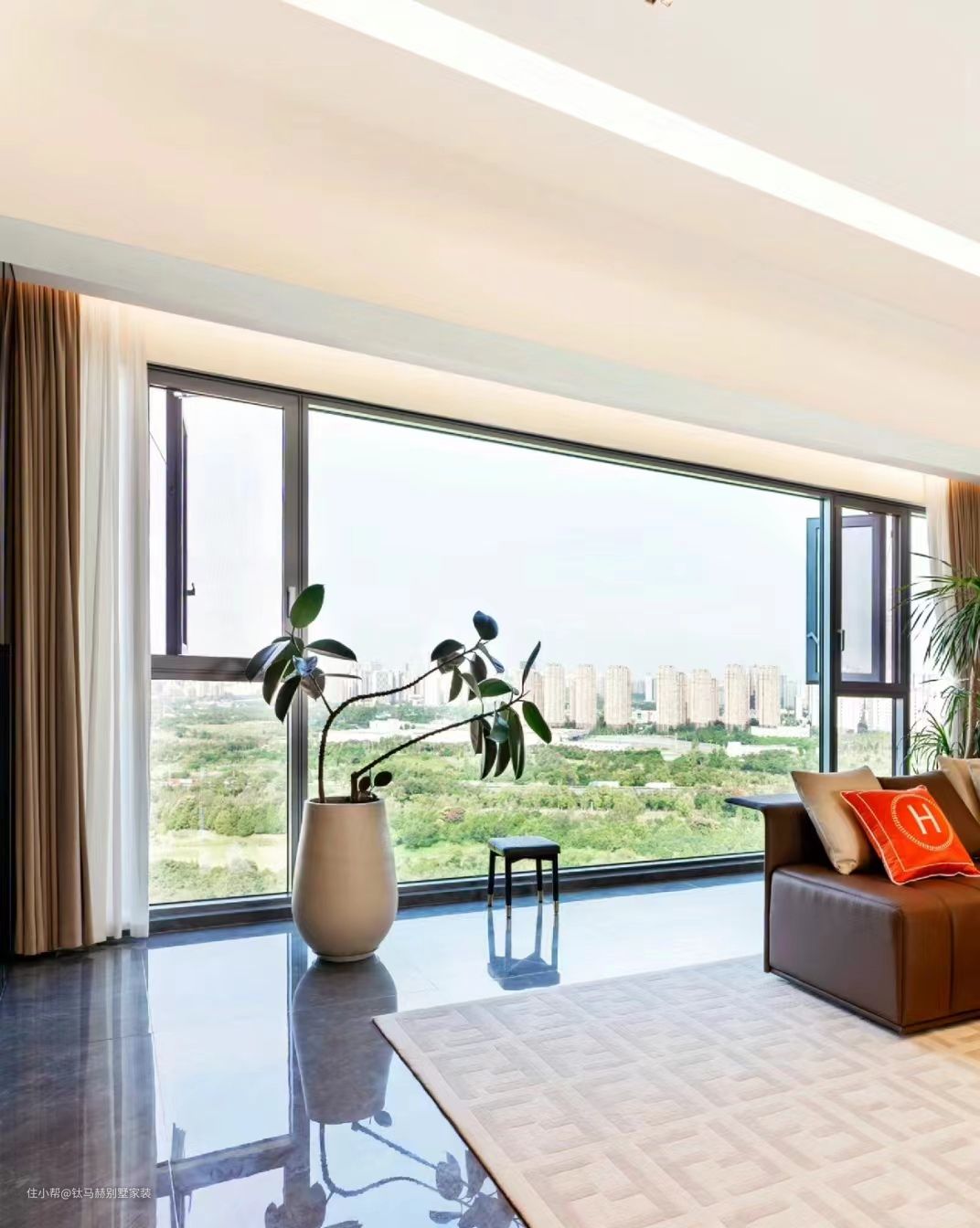面朝南向的大落地窗推荐用冷色调中和,有助于室内视觉温度下降。