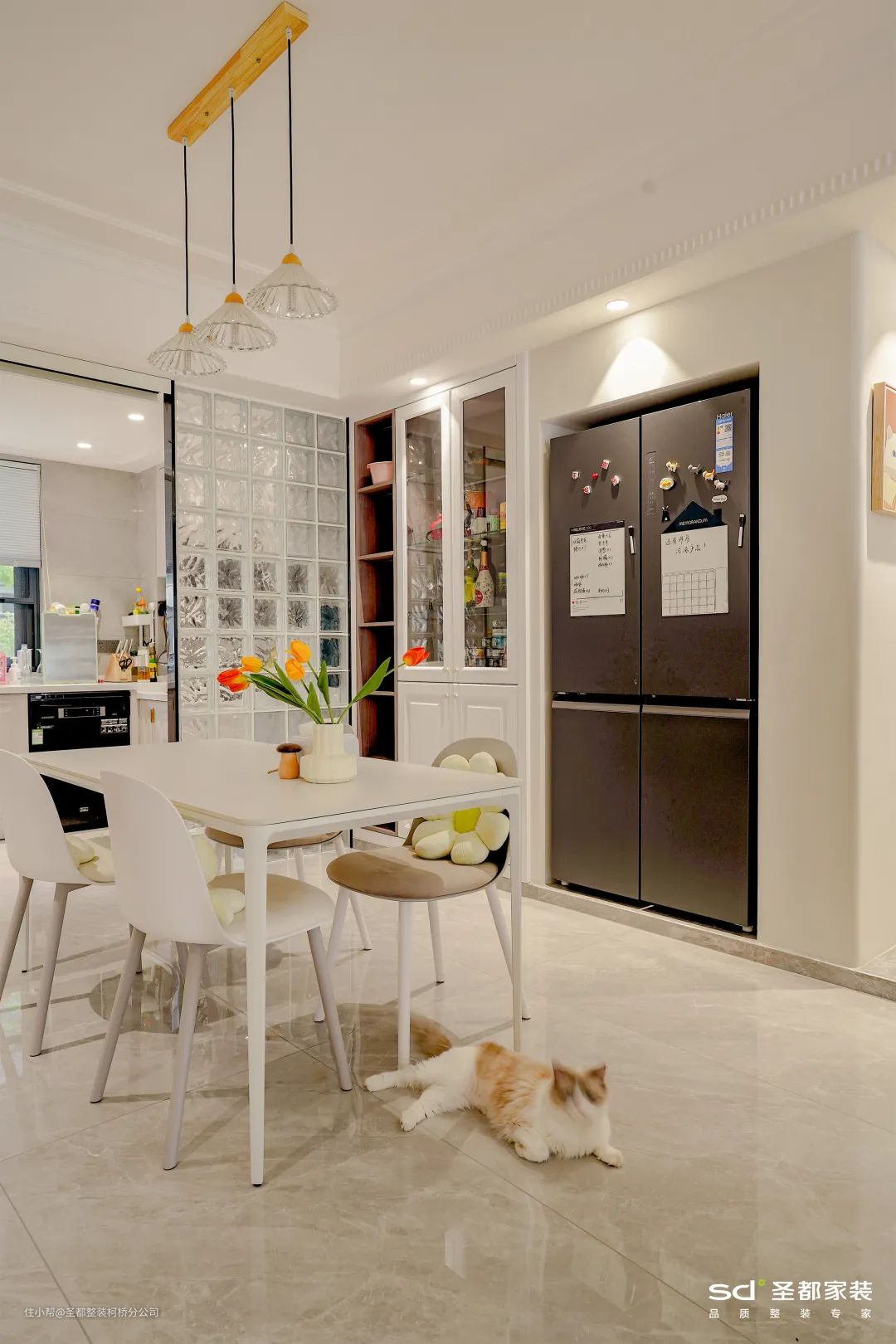 ①餐桌与墙面的距离需要>60cm,就坐会便捷许多。