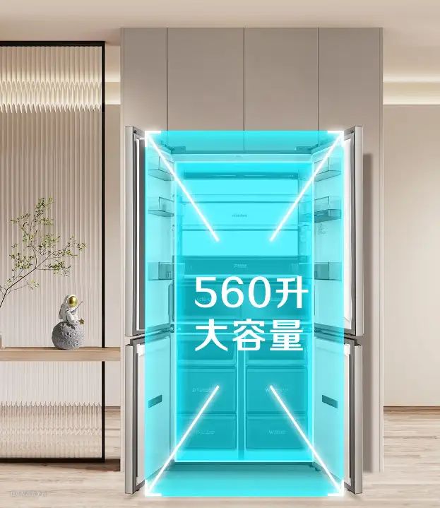 这点其实不用担心,因为容声560搭载顶置速冷恒温系统,同时优化风机、风道、门壁、压缩机舱等内部结构,容量有560L,不仅配置升级了,空间也不浪费。