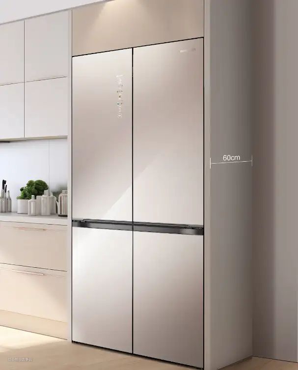家庭橱柜一般厚度在600mm左右,所以冰箱的机身要足够薄,小于等于600mm才不会凸出来。