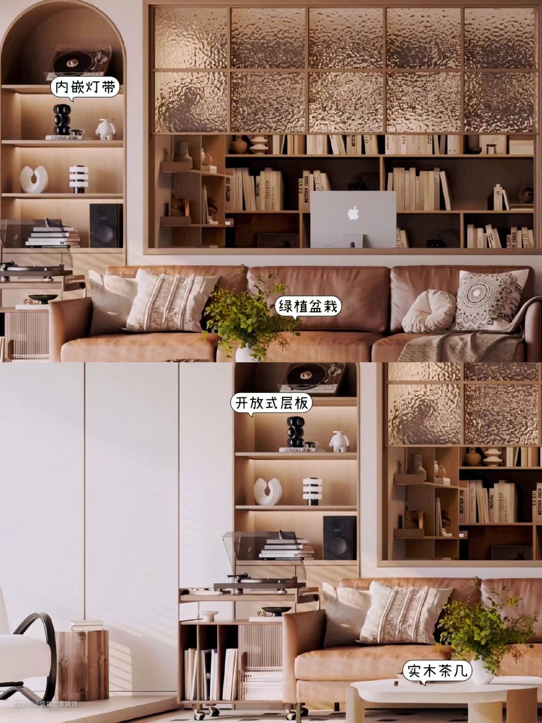🌱家具选择:中古风家具是这种风格的关键。可以选择一些复古造型的家具,如复古沙发、木质餐桌等,并结合现代的设计元素进行改造。此外,中古风家具的材质也很重要,如木质、皮质等,都能为空间增添一份质感。🪑