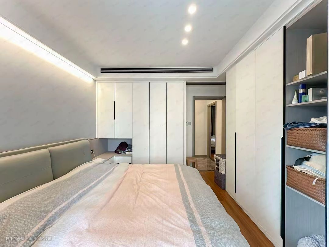 卧室衣柜一门到顶设计,打造整洁有序空间厦门上宅亿家装饰2024-06-01卧室衣柜一门到顶设计,不仅能增加收纳空间,还能使整个卧室看起来更加整洁有序。搭配双眼皮吊顶,能够凸显出整个空间的层次感,使卧室看起来更加高端大气。无主灯设计则能够让光线均匀地散布在整个空间中,营造出温馨舒适的氛围。同时,无主灯设计还能避免过度照明,节省能源,更加环保。