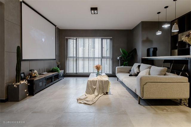 整个家选择了大面积的灰色点缀,客厅一体式的深灰色乳胶漆通刷墙面,但是并不会觉得压抑沉闷。在明亮色彩的软装衬托下,保证了实用舒适性,也带来了家的温暖。