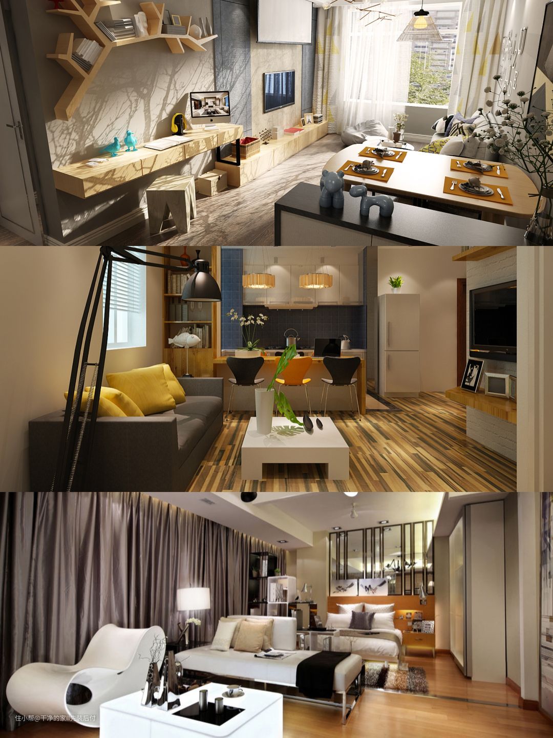- 墙面利用:充分利用墙面空间,如安装壁挂式书架、电视柜、挂钩等。墙面装饰画或镜子也可以起到扩大空间感的作用。