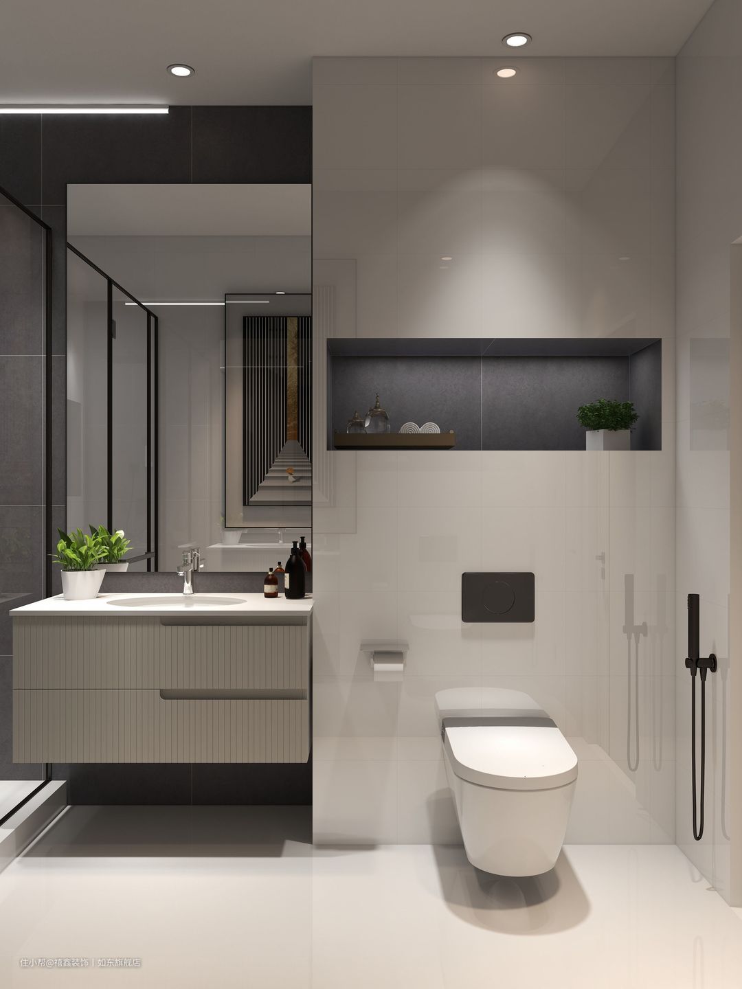- 灰色调:灰色是近年来非常流行的卫生间颜色,它给人一种低调、优雅的感觉。在选择灰色调时,可以选择深浅不一的灰色进行搭配,如深灰、浅灰等,以营造出不同的氛围。同时,也可以在灰色调的卫生间中添加一些金色的装饰品或家电,让卫生间更加高贵、典雅。