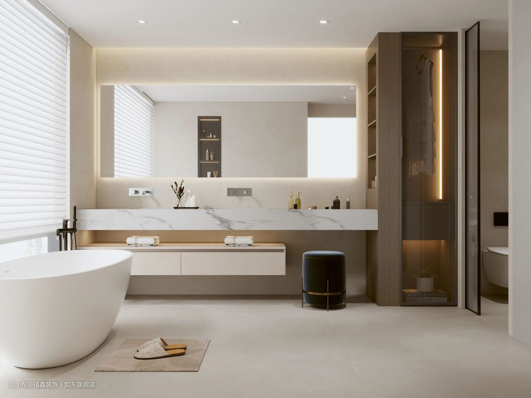 - 整体家居风格:卫生间的配色还需要与整体家居风格相协调。比如,如果整个家居是中式风格,那么卫生间的配色可以选择一些具有中式元素的色彩,如棕色、米色等;如果是现代简约风格,则可以选择黑白灰等经典色系。