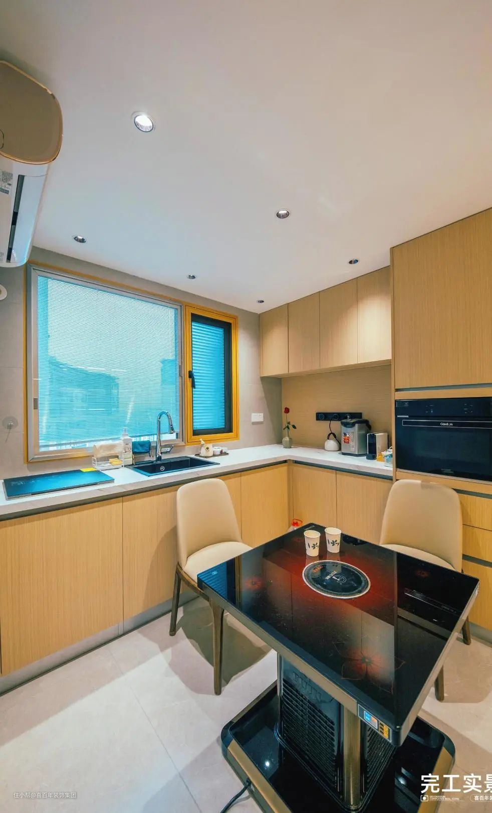 同时拥有中西厨,餐桌左侧是西厨,可以做咖啡饮料和点心;中间是中厨,主要作用是洗菜做饭,互不干扰。