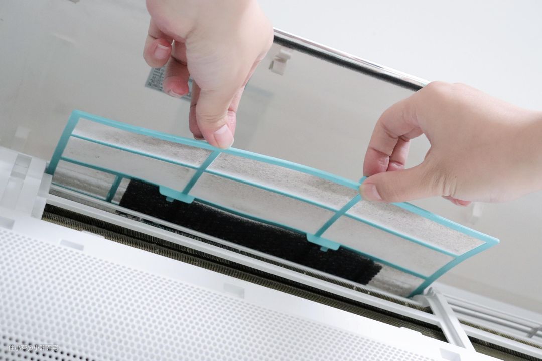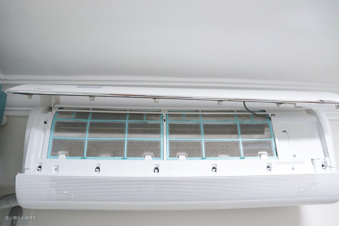 解决办法:用手抠住空调内机的两侧(一般会有凹槽)用力向上抬,打开面罩就能看到里面的滤网。滤网底部有小凸起,用手拉住凸起,先向上抬起,再往下拉,就能取下滤网。