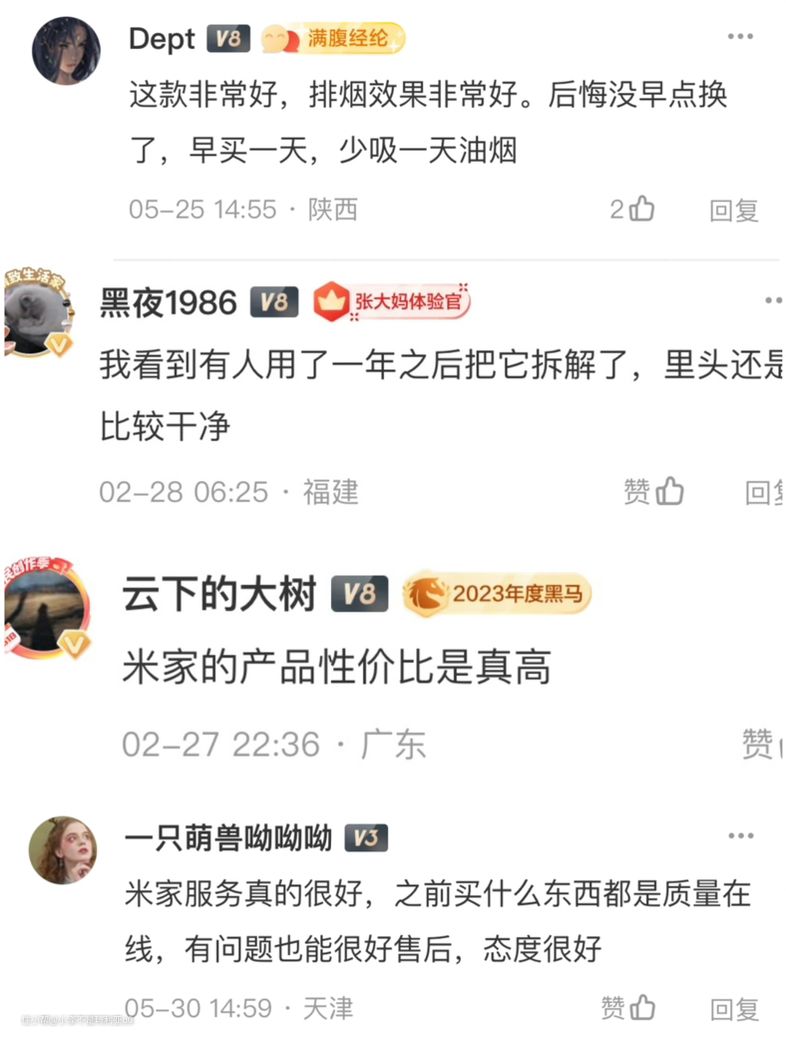 部分值友对净烟机的评价