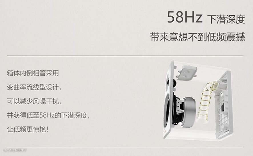 66w的大功率不仅满足了大多数使用场景的需求,而且采用了双功放独立驱动的设计。这种设计分别驱动1英寸丝绢膜高音单元和3英寸铝盆中低音单元,确保了每一个音频细节都能得到充足的驱动力。中低音下潜深至58Hz,为用户带来震撼的低音效果与饱满的中高频表现。
