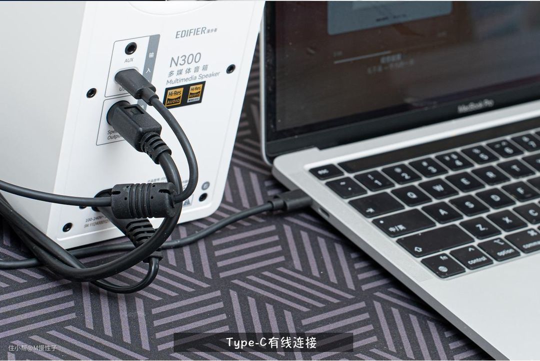 另外非常少见的配备了USB模式,漫步者N300音箱支持type-c接口的声卡模式输入,这为我们提供了更多样化的连接方式。通过type-c接口,可以方便地将声卡与音箱连接,从而享受高质量的音频体验。