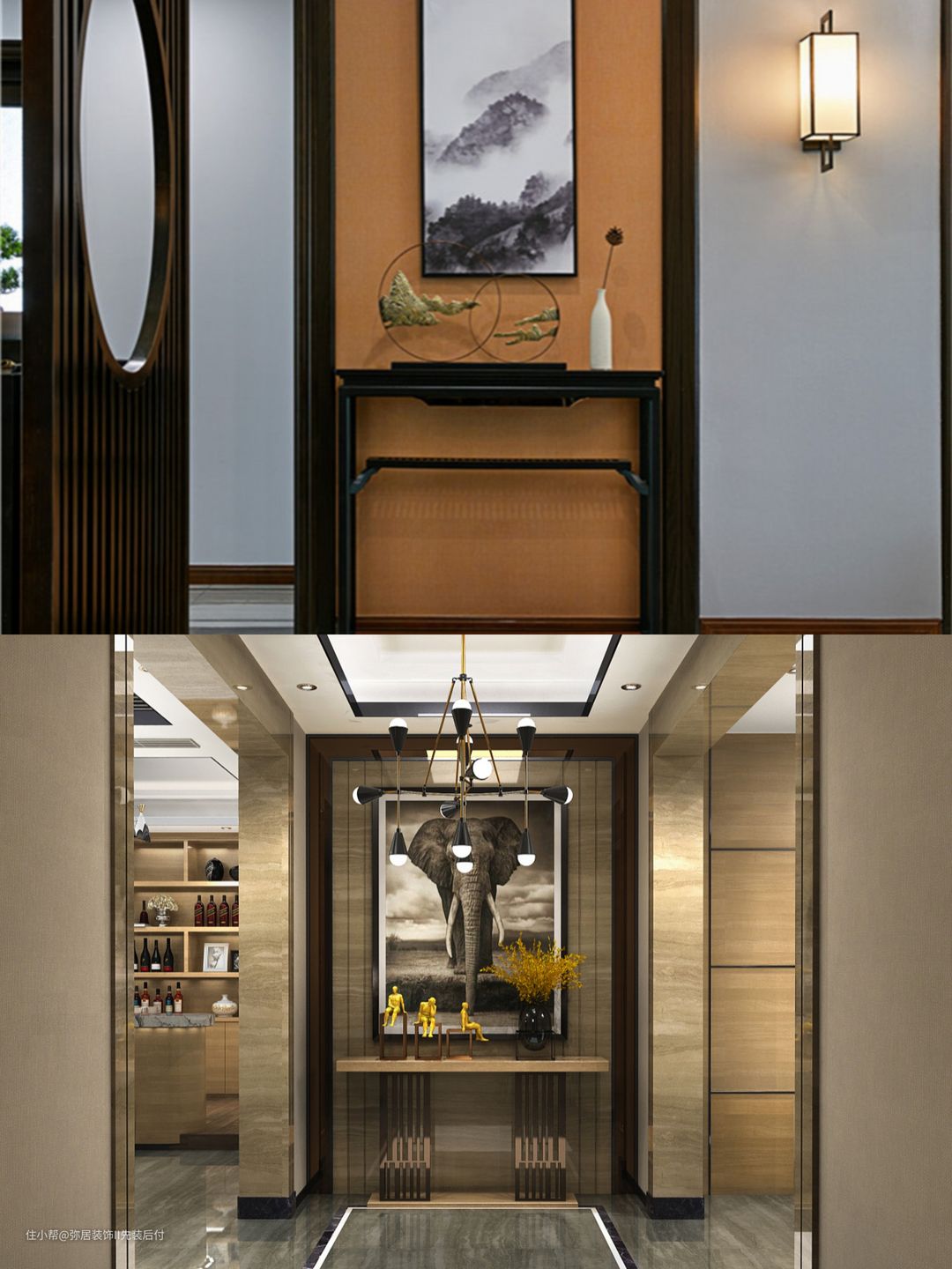 - 展示墙设计:在玄关处设置展示墙,可以展示一些装饰品或挂画等,吸引视线并起到遮挡作用。展示墙可以采用多种材质和风格,与整个家居风格相协调。