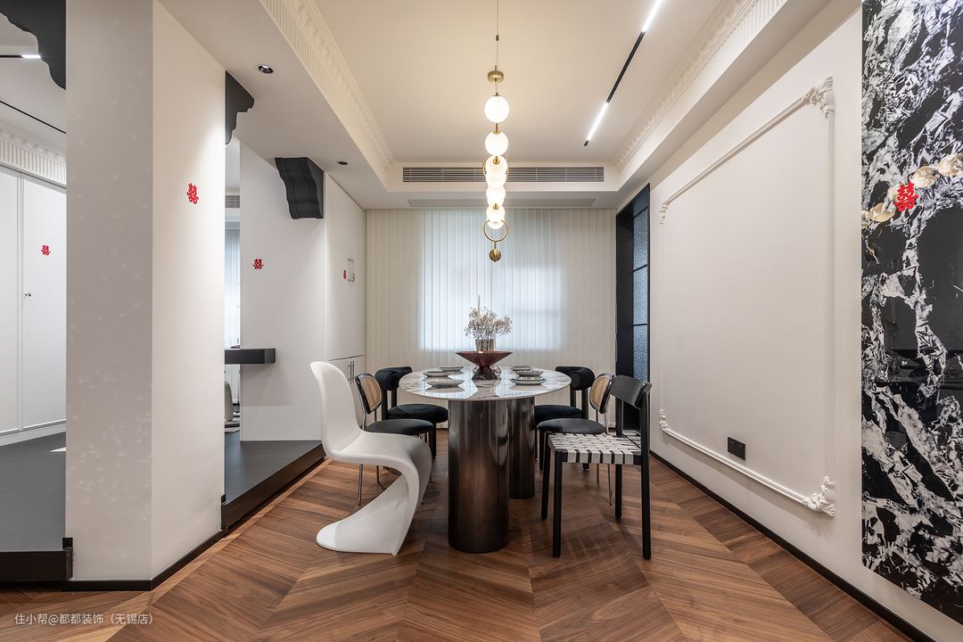法式风格极为注重线条的流畅性以及空间的层次感。墙壁与家具多采用简洁的线条和几何形状来进行装饰,特别是弧形线条的运用,可谓是法式风格的一大突出亮点!墙面的石膏线条、门洞的弧度、家具的外部轮廓等,都是非常容易打造出法式氛围感的要素。还可借助镂空设计,或者通透、高亮光的材质,例如水晶、镜子、玻璃等来增强空间感。
