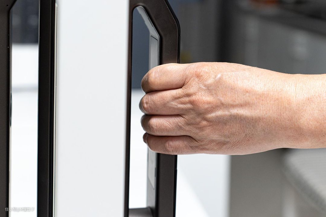 在把手的背面巧妙地设置了感应区,手指感应到后就可以自动解锁。在这个过程中,我们无须进行任何额外的操作,如像半自动锁体那样旋转把手或按下按钮,只需一握即可轻松出门。