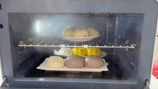 通过宜盾普X1微蒸烤箱15分钟的快蒸后,每一个小包子“砰砰””水润饱满了起来,不同口味的包子香气都被激发出来,充盈在小小的厨房间,幸福感十足。