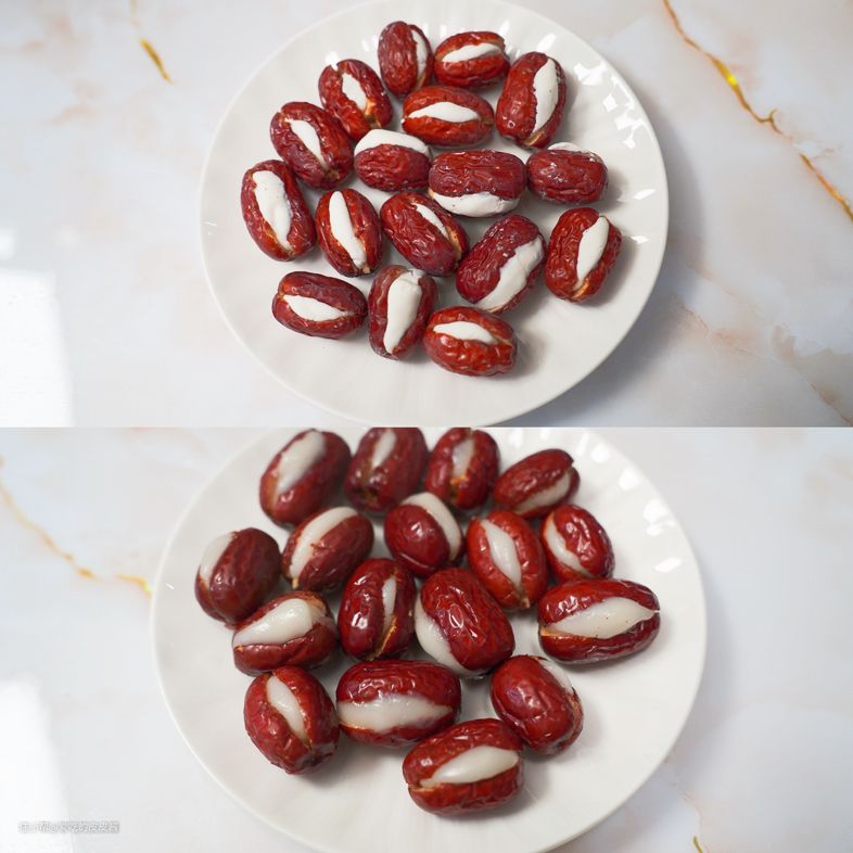 有高蛋白的海鲜荟萃,也有软糯香甜的“心太软”,尧尧小朋友最爱吃的一道小甜品,做法简单,还可以当小零食,明显看到通过蒸制后的红枣表面褶皱处,都嘭嘭饱满了起来。