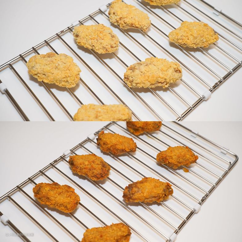 选择宜盾普X1双热风空气炸模式,调整200℃温度,15分钟,出炉后的脆皮炸翅酥脆又多汁,空气炸相较于传统油炸更健康,关键是口感也不会受到影响,依旧可以享受到类似油炸的口感,嘎嘎香。