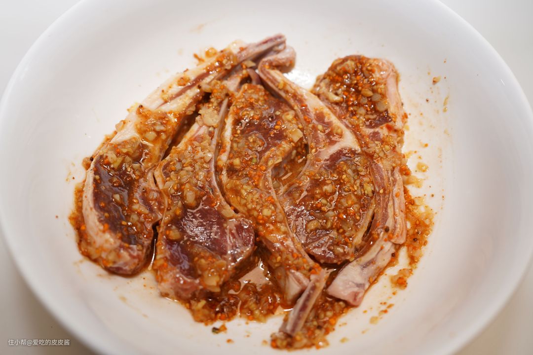 需要注意的是,烤制法式小切前腌制非常重要,这是灵魂,放入蜂蜜少许,蚝油一勺,胡椒粉一勺,盐少许,适量蒜蓉酱,10克羊排蘸料(复合调味料),腌制上两小时,那滋味简直绝了。