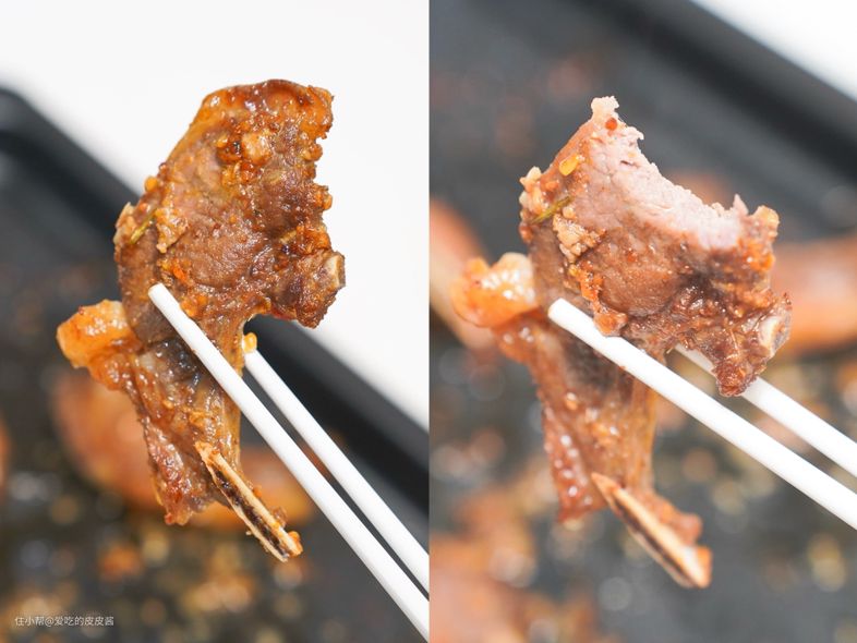 还有老公最爱的内蒙法式小切,作为西北人最爱吃羊肉,羊汤羊面烤羊肉,肉质细嫩无膻小羊排可是他的心头好,可惜的是这次小切的肥肉偏多,烤制出来的油脂是相当丰富。