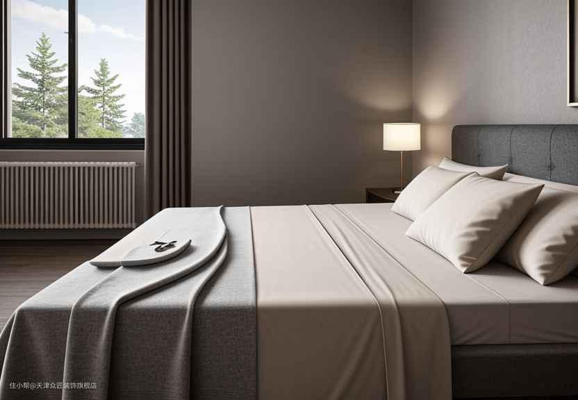 卧室更是禅意东方风格的重要体现之地。灰色的床品柔软而舒适,让人能够在疲惫的一天后尽情放松身心。胡桃木色的床架稳固而大气,给人一种踏实的感觉。床头可能会摆放着一幅简约的水墨画,或是一个小巧的中式摆件,增添了一份文化气息。窗边的胡桃木色百叶窗,既能调节光线,又为房间增添了一份古朴的韵味。