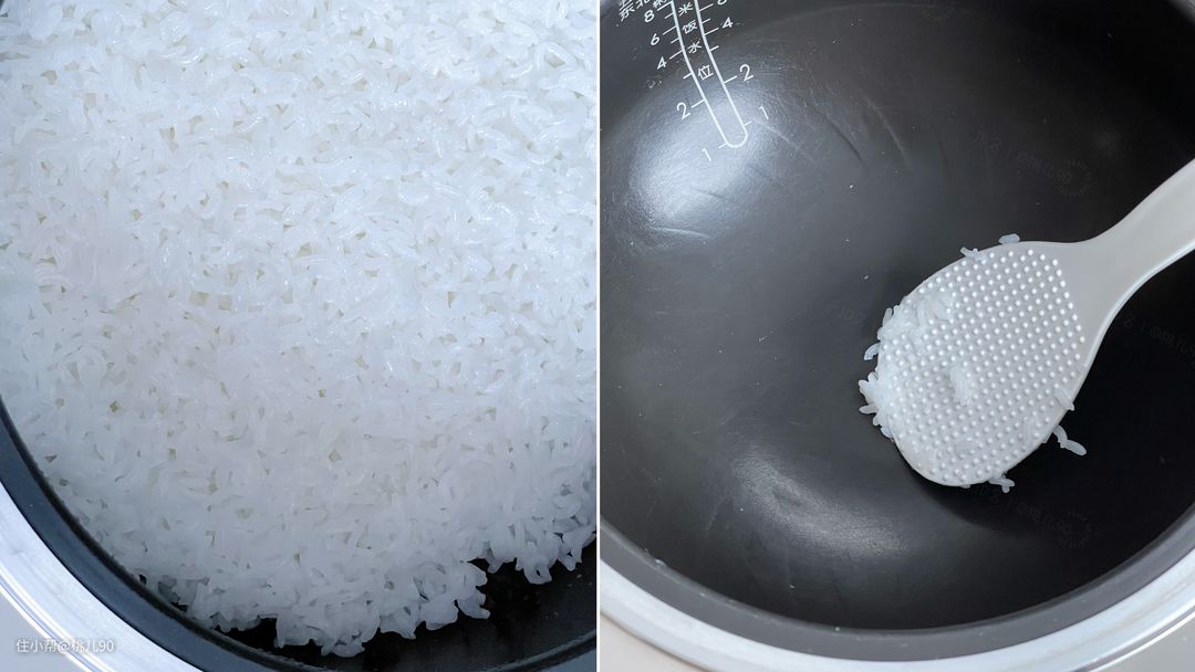 复合材质本釜2.0内胆也没有粘锅的情况出现,把米饭舀出来后,内胆上除了一丝丝米渣,什么都没剩下,感觉都不用洗,擦一擦都能清洁干净。从记事儿开始电饭煲内胆都是要用水泡着,泡一段时间才能洗干净的。苏泊尔这款电饭煲的内胆就用不着泡了,清洗非常方便。