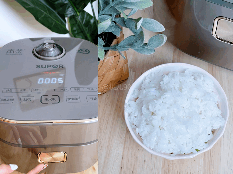 原来只在电视广告上看到过那种粒粒分明,捏起来还很Q弹的米粒,用这款电饭煲,我居然也做出了这样的米饭!这样一碗饭,感觉还没上菜,就很有食欲了。