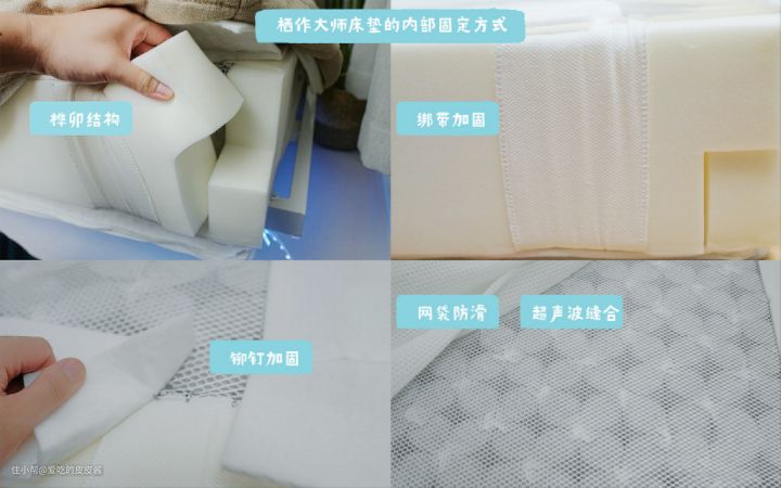 它内部的填充层都是采用「物理固定」方式,并非使用胶水粘合,而是通过防滑网布,增大摩擦力,实际使用下来不会发生移位的情况。