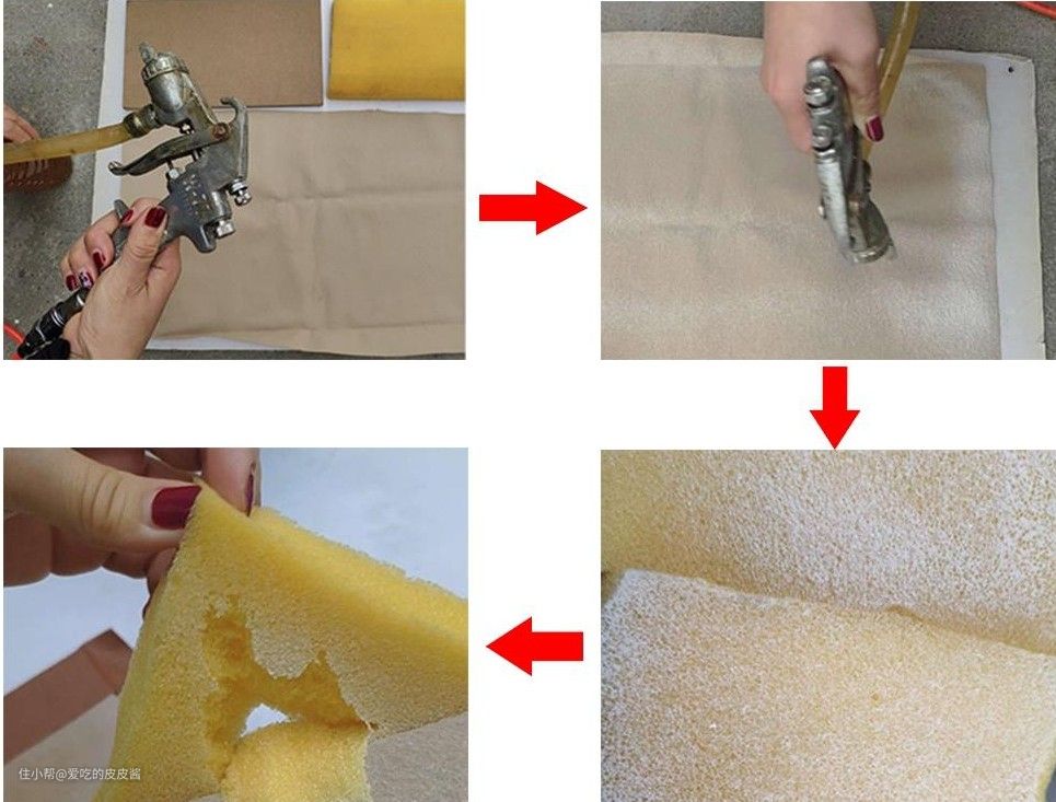 比如说一张1米8床垫,全喷胶量就非常大了,但人工成本是最低的,家中有废弃床垫的可以撕撕看,相当费劲。